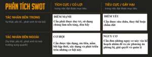 SWOT – một công cụ hữu ích cho việc nắm bắt và ra quyết định trong mọi tình huống đối với bất kì tổ chức kinh doanh nào. Với bộ công cụ này sẽ giúp cho Doanh Nghiệp nắm bắt và nhận biết được những điểm mạnh, điểm yếu, cũng như tìm kiếm cơ hội và thách thức để giúp cho Doanh Nghiệp phát triển một cách bền vững và tốt đẹp hơn.